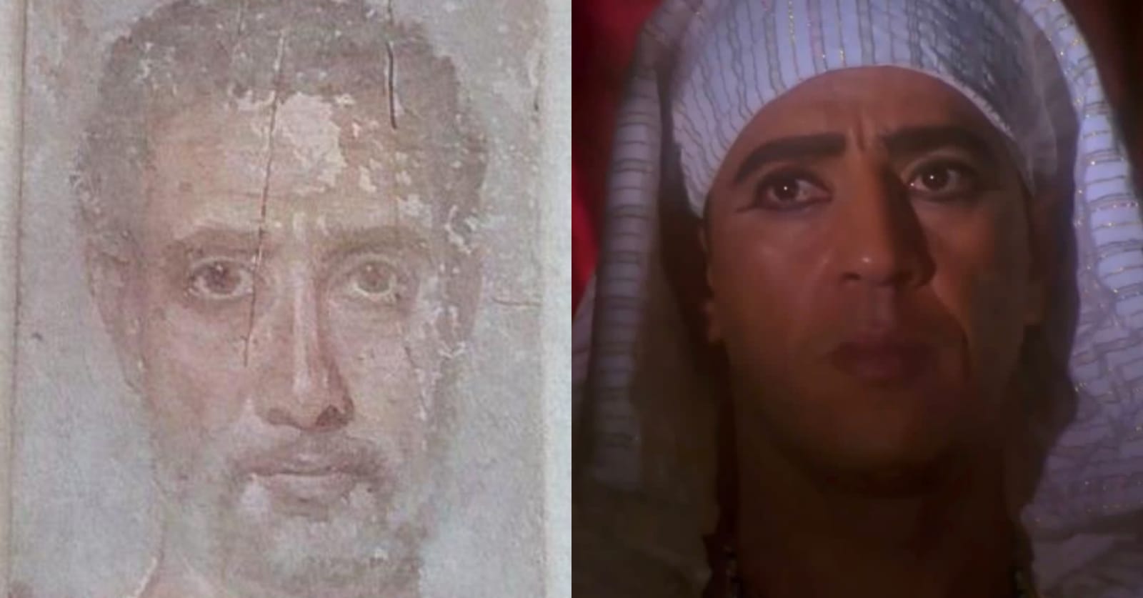 نشر الفنان الكبير صورتين تضمنت مقارنة لافتة: الأولى هي صورة لمقابر قدماء المصريين في محافظة الفيوم، التي تبرز عظمة وبساطة الفن المعماري القديم.أما الصورة الثانية، فكانت لقطة كوميدية من فيلمه الشهير 'رشة جريئة' الذي عُرض في عام 2001، وتحديداً مشهد يجمعه بالفنانة ياسمين عبد العزيز، حيث كانا يرتديان أزياء فرعونية في إطار ساخر ومناسب لأحداث الفيلم.