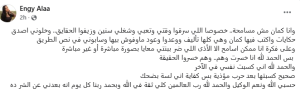 واختتمت: «صحيح كسبتها بعد حرب مؤذية بس كفاية إني لسة بضحك.. حسبي الله ونعم الوكيل والحمدلله رب العالمين كلي ثقة في الله وبحمد ربنا كل يوم أنه بعدني عن الشر ده».