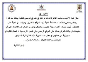 اختراق الموقع الرسمي لكلية الآداب جامعة القاهرة وتحذير للطلاب وأعضاء هيئة التدريس