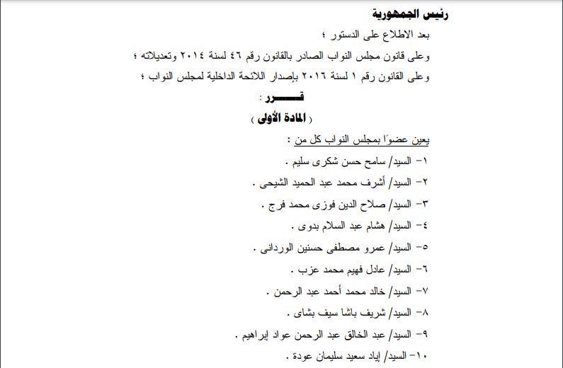 نشرت الجريدة الرسمية، قرار الرئيس عبد الفتاح السيسي، بأسماء المعينين في مجلس النواب 2026.