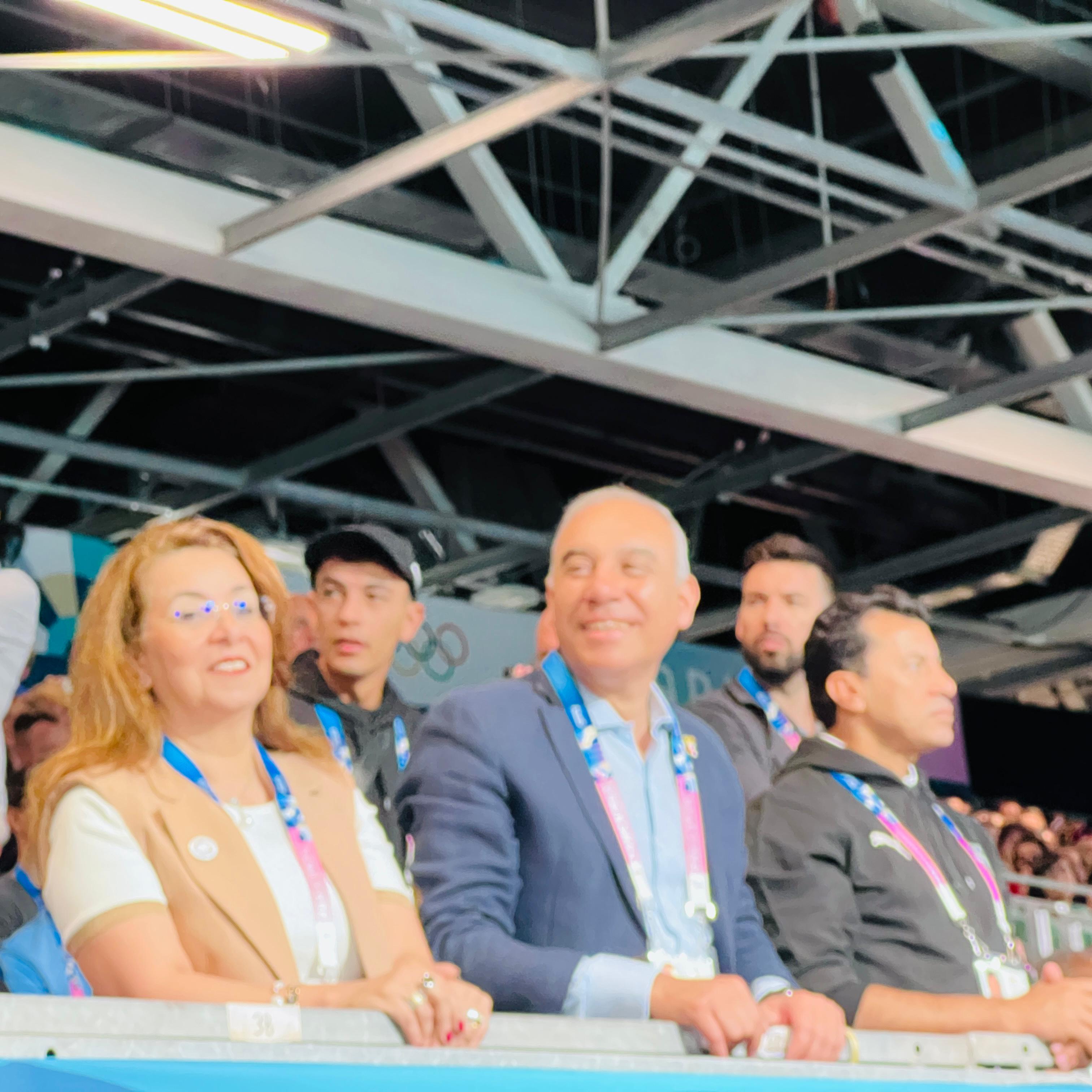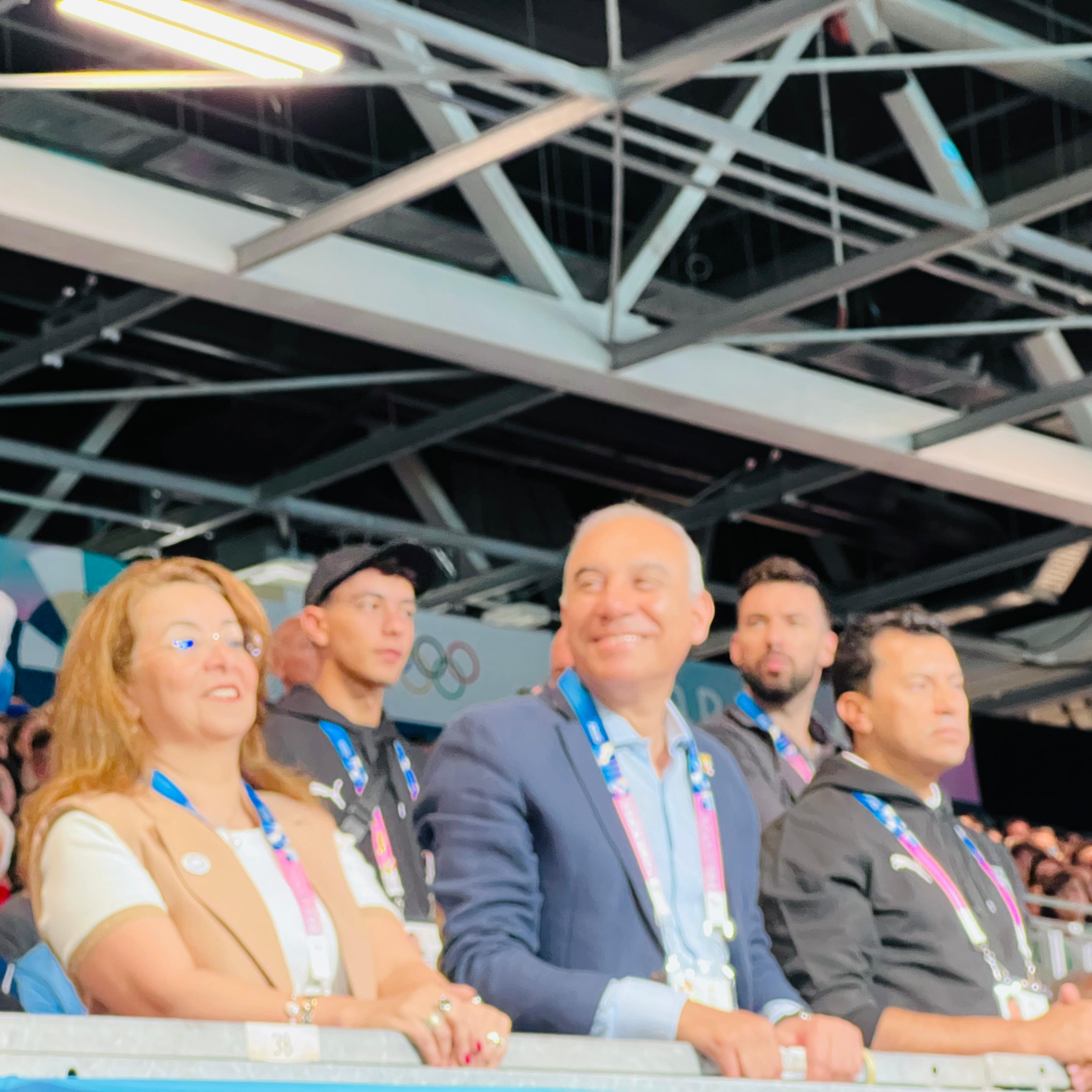 حرص محمود الخطيب رئيس نادي الأهلي على موازرة فراعنة اليد في بداية مشوار الفراعنة في دورة الألعاب الأولمبية المقامة حالياً ببارس.