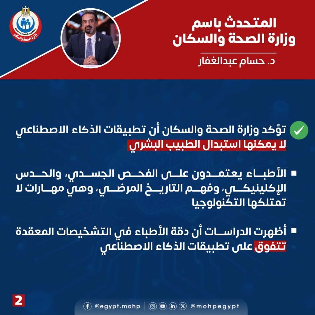 بيان عاجل من الصحة: الذكاء الاصطناعي أداة مساعدة وليس بديلًا عن الطبيب