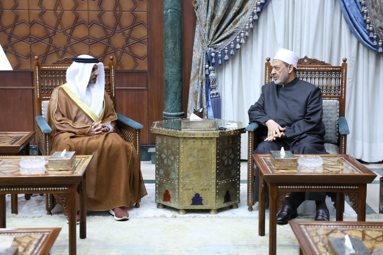 تعبيرًا عن الاحترام.. سفير الإمارات الجديد لدى مصر يقبل جبين شيخ الأزهر