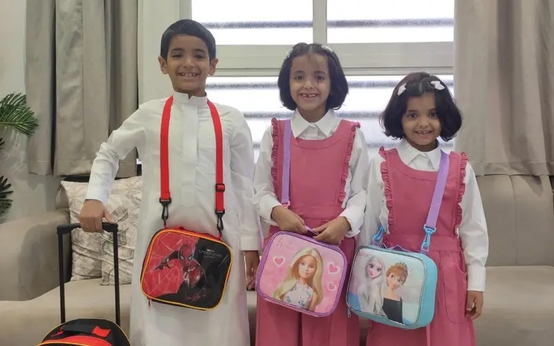 3 أطفال أشقاء دون العاشرة من عمرهم، انتشرت صورة التقطت لهم بشكل عفوي، على مواقع السوشيال ميديا، وهم عائدون من المدرسة، حيث يظهر في الصورة الطفل الذي يدعى مشعل الشهراني، وهو يحمل حقيبتي شقيقتيه اللتان تحويان أدواتهما المدرسية، في محاولة منه للتخفيف عنهما.