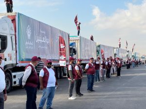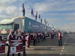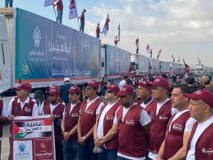 وجاء الاصطفاف تحت شعار “قافلة السلام”، بعد نجاح الجهود المصرية في تثبيت وقف إطلاق النار، وسط حضور مكثف للمتطوعين وفرق العمل الميدانية التابعة لمؤسسات التحالف، التي بدأت منذ الصباح المبكر في تجهيز وتحميل المواد الغذائية والمساعدات الإنسانية، لضمان وصولها السريع إلى الأهالي في غزة.وأكدت سمية أبو العينين، نائبة رئيس مجلس إدارة المؤسسة، أن الوجود في هذا الاصطفاف بقيادة التحالف وتنسيق السفيرة نبيلة مكرم يمثل رسالة التزام ووفاء للشعب الفلسطيني، مشيرة إلى أن المتطوعين يعملون بروح عالية وفرحة واضحة هذه المرة، حيث تأتي القافلة بعد إعلان وقف الحرب، لتتحول من “قافلة تحت النار” إلى “قافلة تحت سماء السلام”.