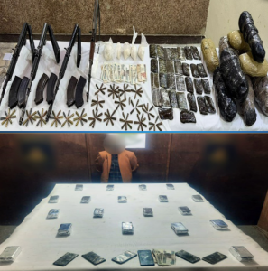 كما تم ضبط باقي عناصر تلك البؤر الإجرامية، وبحوزتهم قرابة نصف طن من المواد المخدرة المتنوعة شملت (حشيش، بانجو، هيدرو، آيس، هيروين، كوكايين)، بالإضافة إلى 7,650 قرصًا مخدرًا، و29 قطعة سلاح ناري، من بينها رشاش جرينوف، و8 بنادق آلية، و4 بنادق خرطوش، و16 فرد خرطوش.
