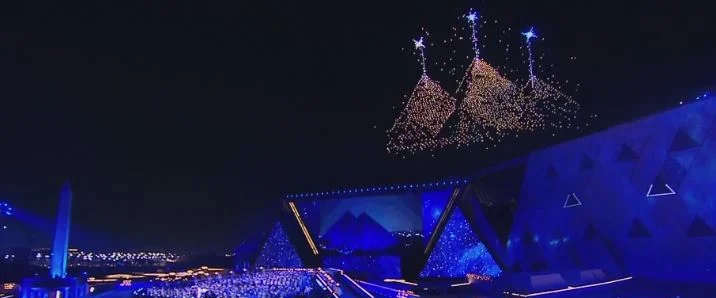 شهد حفل افتتاح المتحف المصري الكبير عرضًا مذهلًا في سماء الجيزة، حيث تزينت السماء بأشكال ملوك الفراعنة والأهرامات باستخدام تقنية الهولوجرام، بحضور الرئيس عبد الفتاح السيسي.