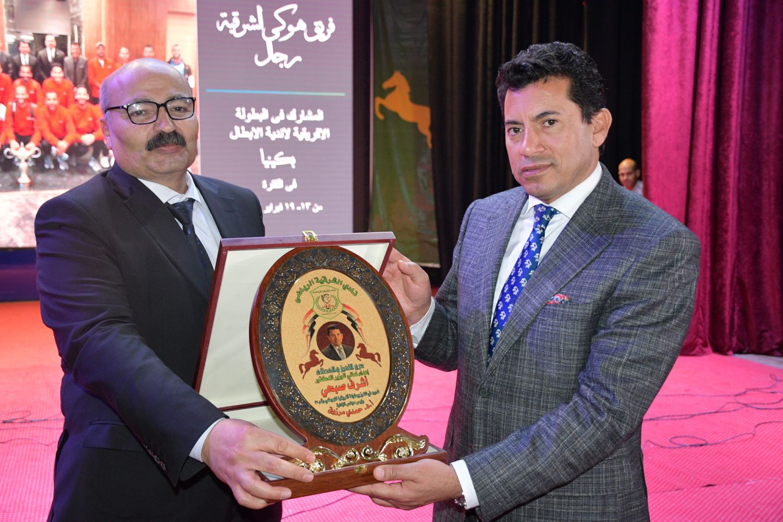 جاء ذلك خلال تكريم وزير الشباب والرياضة الدكتور أشرف صبحي، والدكتور ممدوح غراب محافظ الشرقية، لفريق الهوكي الرجال بنادي الشرقية الرياضي بقصر ثقافة الزقازيق؛ بعد فوزه ببطولة إفريقيا للأندية الأبطال، وذلك للمرة السادسة والعشرين في تاريخه، بحضور لفيف من القيادات الشعبية والتنفيذية وقيادات وزارة الشباب والرياضة، وعدد من السادة نواب مجلسي النواب والشيوخ عن محافظة الشرقية.