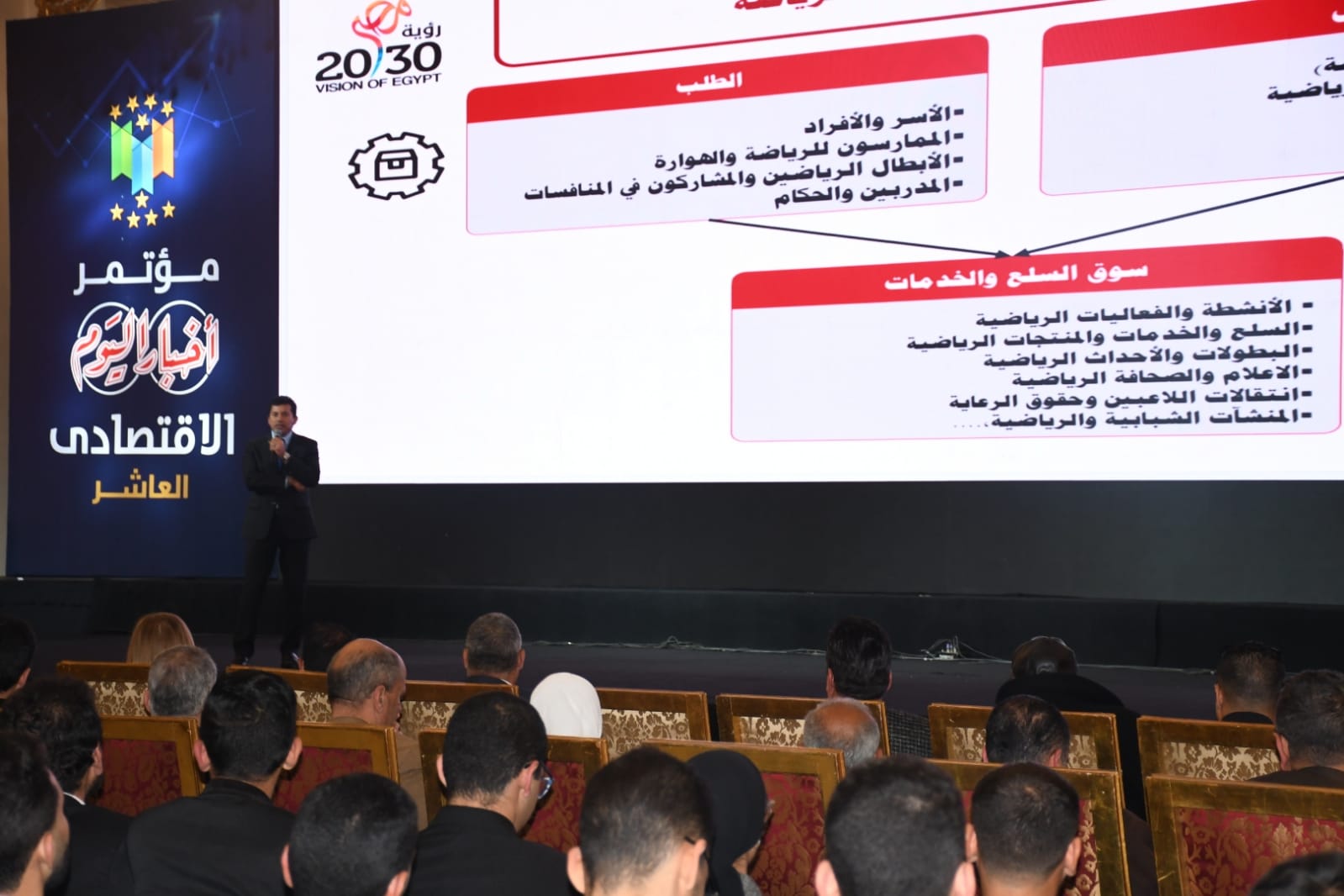 أستعرض الدكتور أشرف صبحي وزير الشباب والرياضة، اليوم، خلال جلسة نقاشية بعنوان ' الرياضة المصرية والإقتصاد الوطني بين الواقع والمأمول' بفعاليات مؤتمر أخبار اليوم الإقتصادي العاشر تحت عنوان 'الإقتصاد المصري تحديات وأولويات'، تحت رعاية السيد رئيس مجلس الوزراء، وحضور عدد من السادة الوزراء، المستثمرين ومجتمع الأعمال والخبراء والأكاديميين، وحضور الكاتب الصحفي أحمد جلال رئيس مجلس إدارة مؤسسة أخبار اليوم، ولفيف من قيادات الوزارة، وشباب الجامعات المصرية، وشباب وحدة الشمول الرقمي.