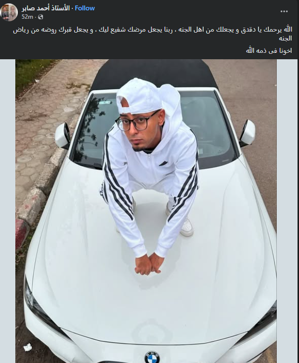 وأعلن أحد أصدقائه الخبر عبر فيسبوك، قائلاً: «الله يرحمك يا دقدق ويجعلك من أهل الجنة، ربنا يجعل مرضك شفيع ليك، ويجعل قبرك روضة من رياض الجنة، أخونا في ذمة الله».
