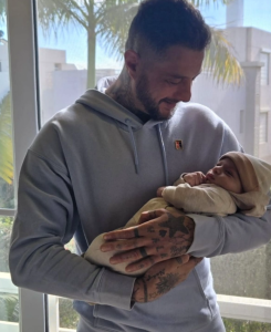 ولم يوضح هوية الرضيع، لكن تبين أنه ابن الفنانة الشابة سمية الألفي ابنة خاله.